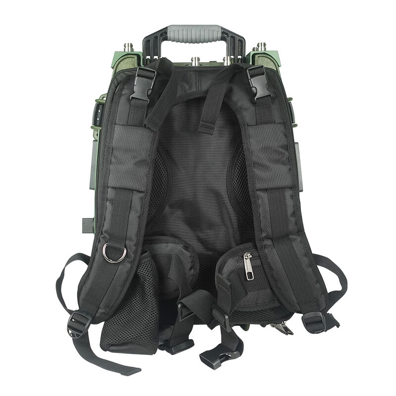 TX-BF05 to zakłócacz sygnału drona typu plecak do użytku osobistego z wbudowanym akumulatorem ładowalnym.