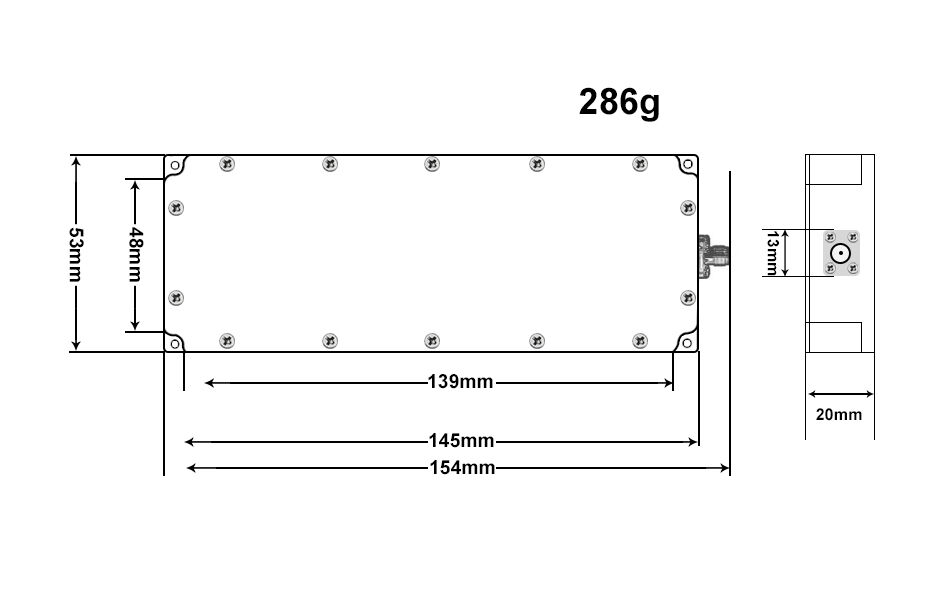 Ten moduł zagłuszacza sygnału 50W może być dostosowany do wielu pasm częstotliwości w zależności od wymagań, takich jak 1200 MHz, 2400 MHz, 5200 MHz, 5800 MHz.